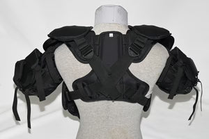 - Air-cell cushion chest pad with “Shock Shield” sternum plate.
